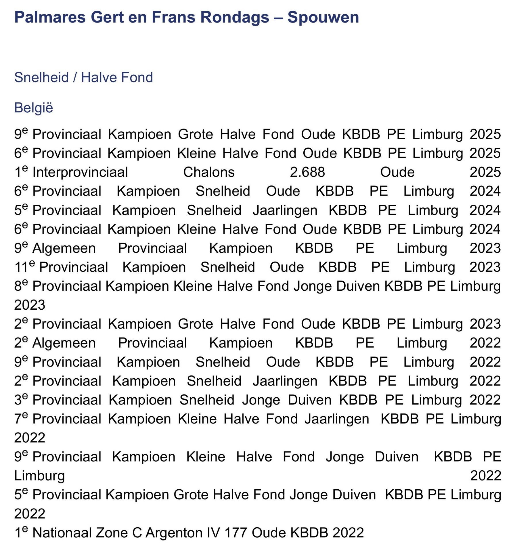 Reeds in 2019 werden zij 3de Nationaal Kampioen Snelheid en behaalden zij de Gouden Duif