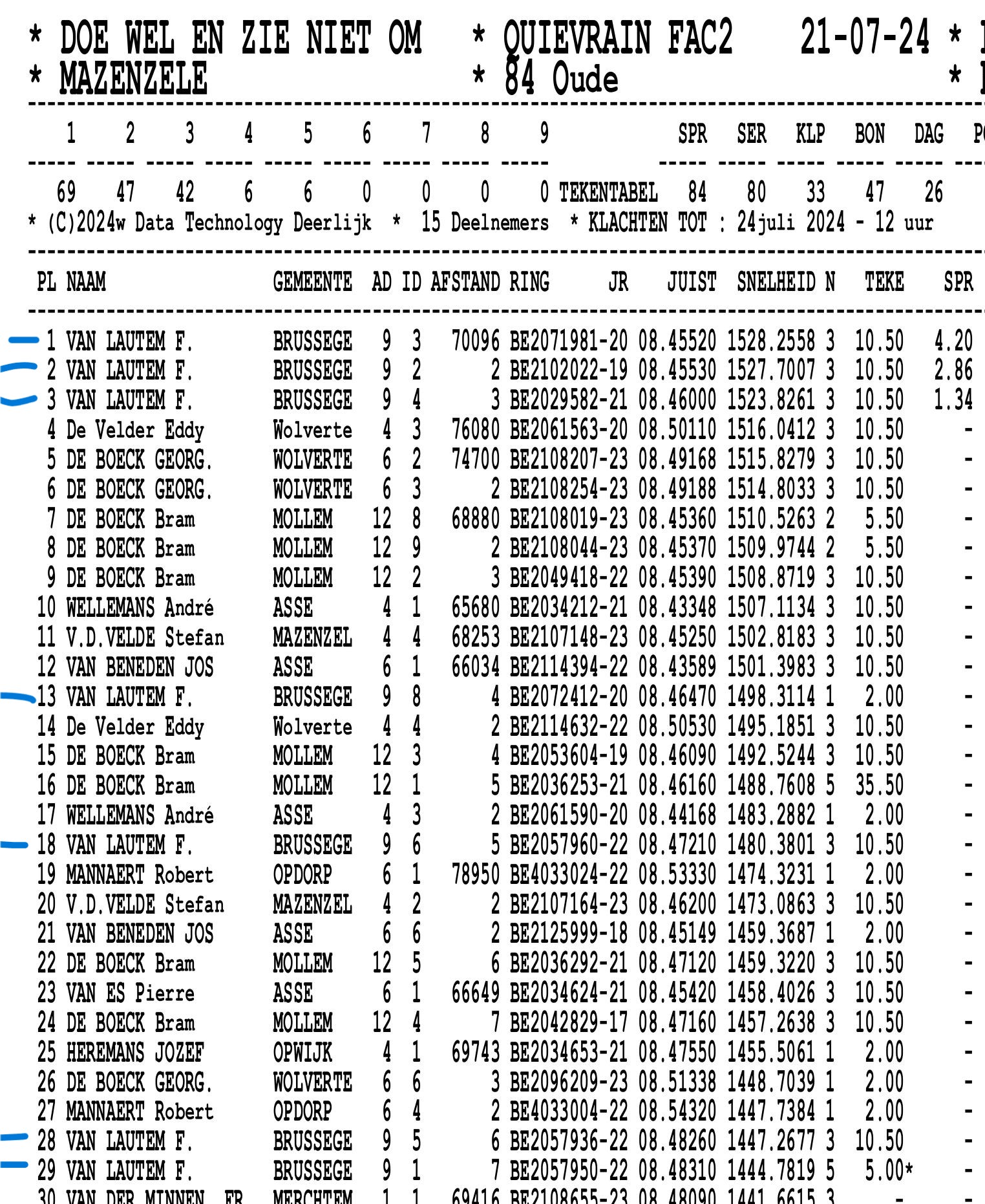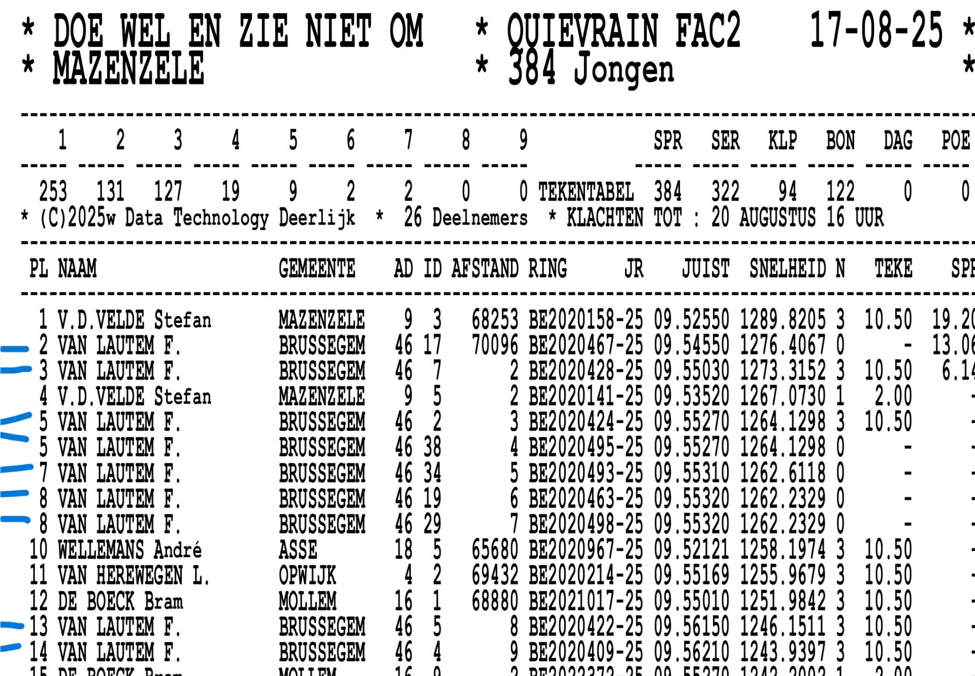 Asduiven Oude, van de 1ste tem de 6de plaats en kampioen 2EA en 3EA Oude