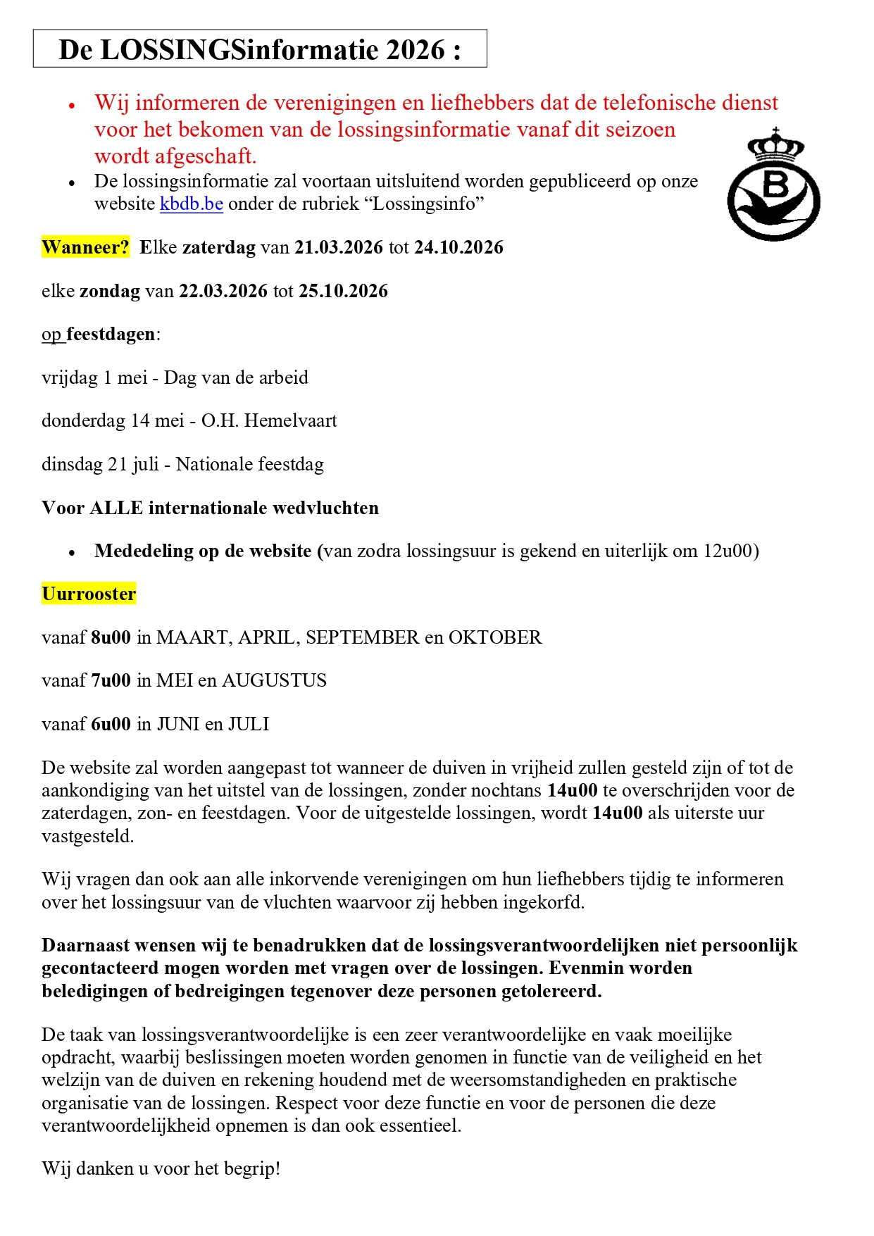 7 april 2022 aangaande verplichte mutaties en eventuele uitsluiting uit wedstrijdvluchten