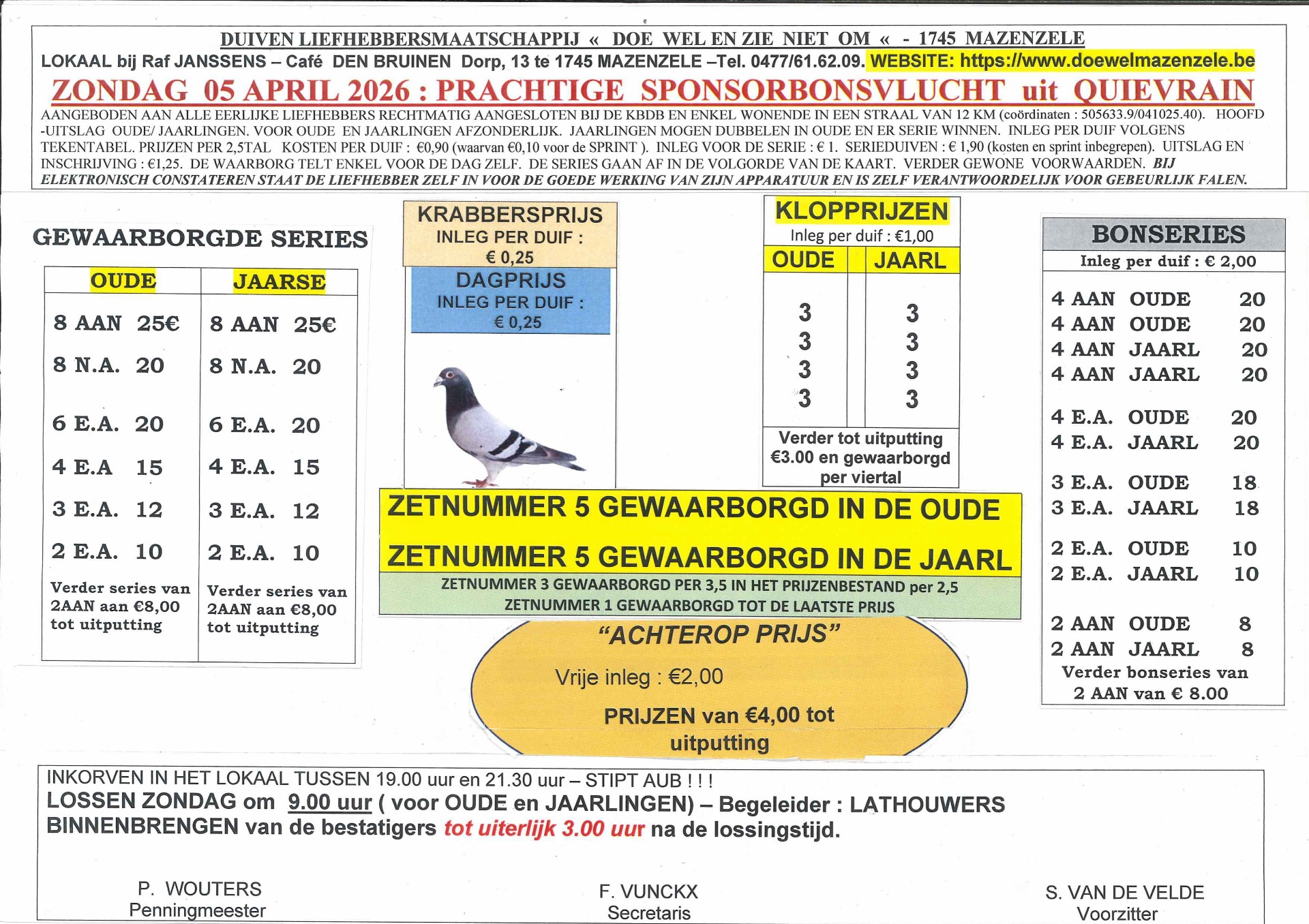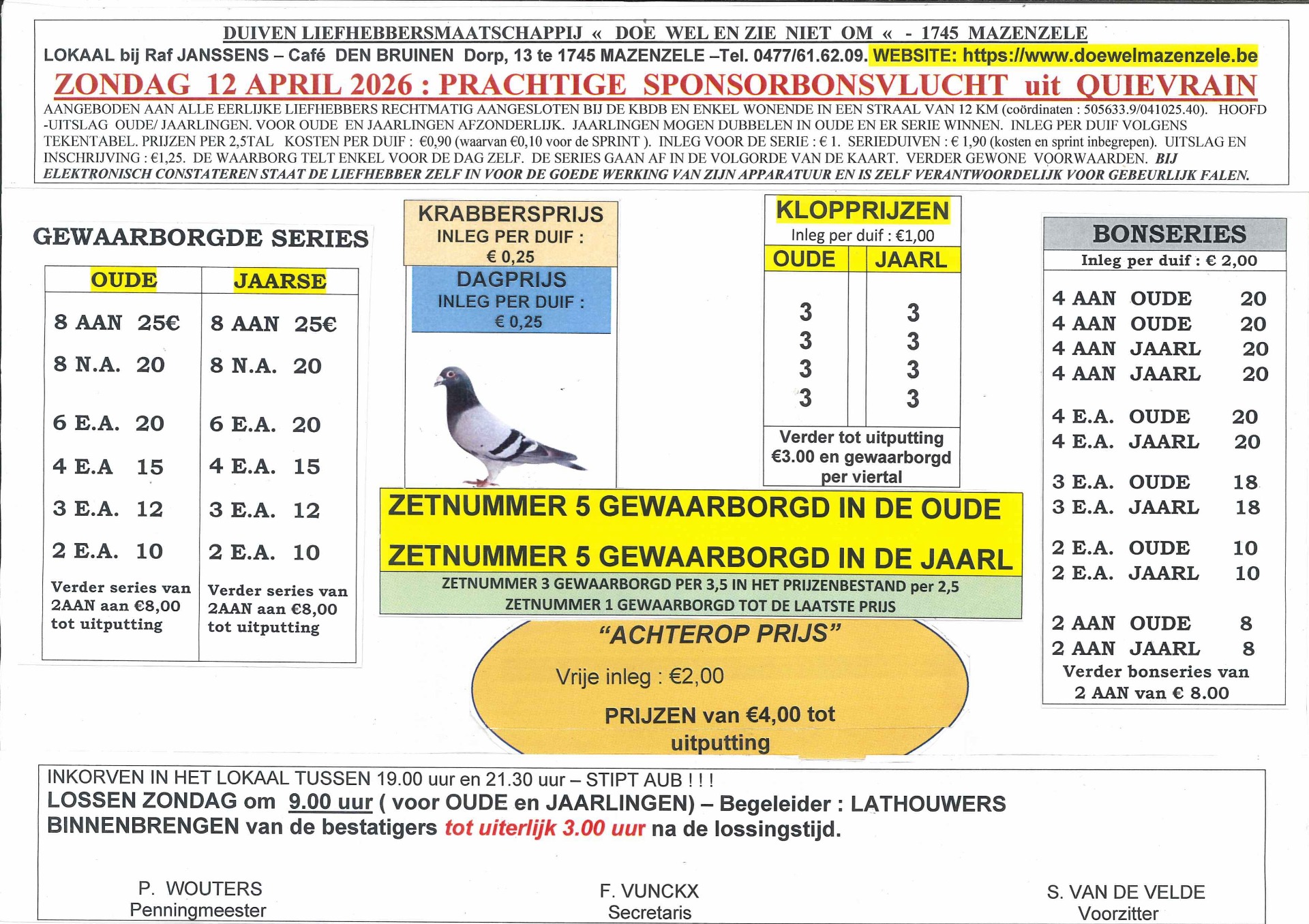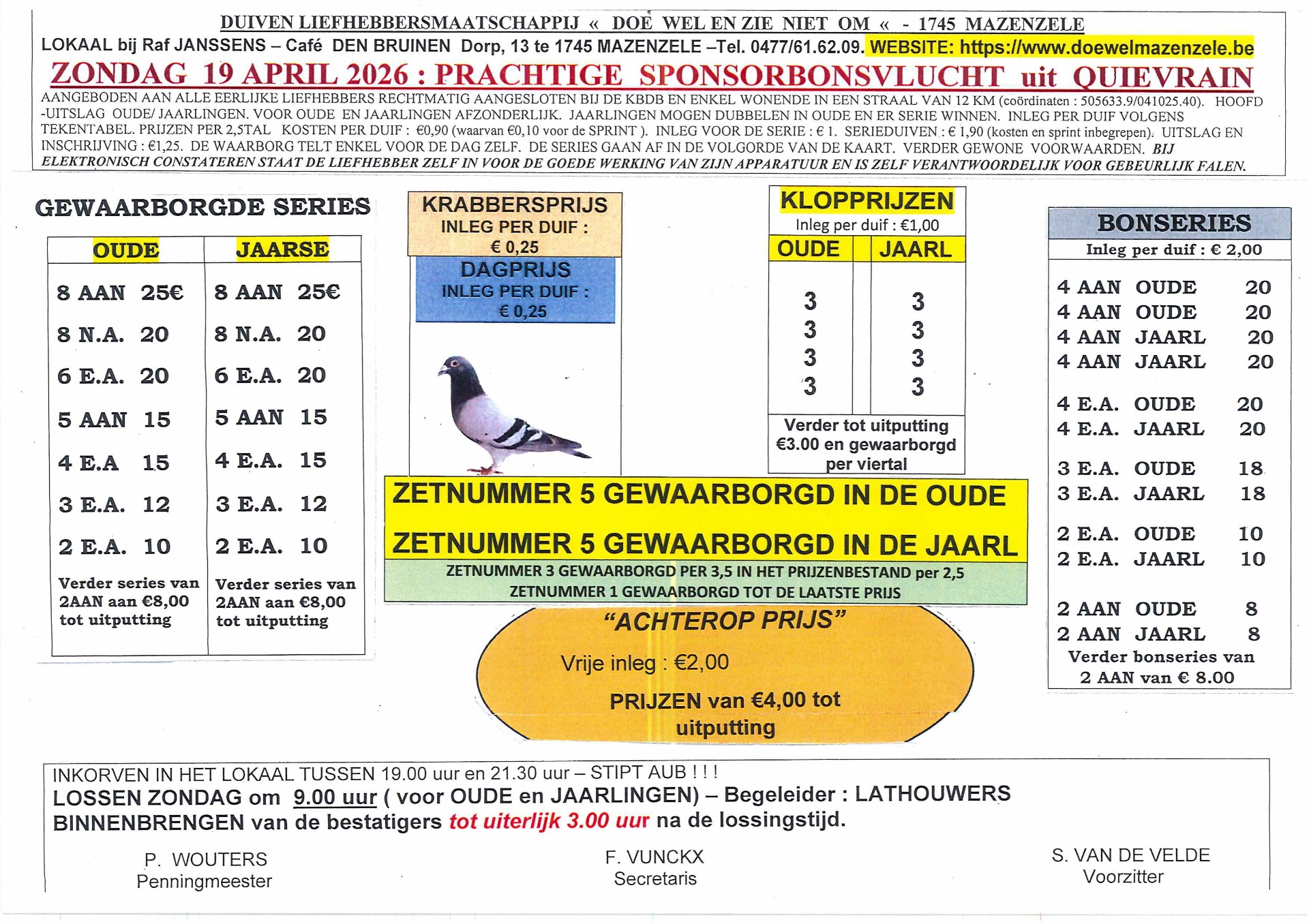 Prachtige Sponsor Bonsvlucht ter herdenking van Emiel Houtevelt op 29 september 2025